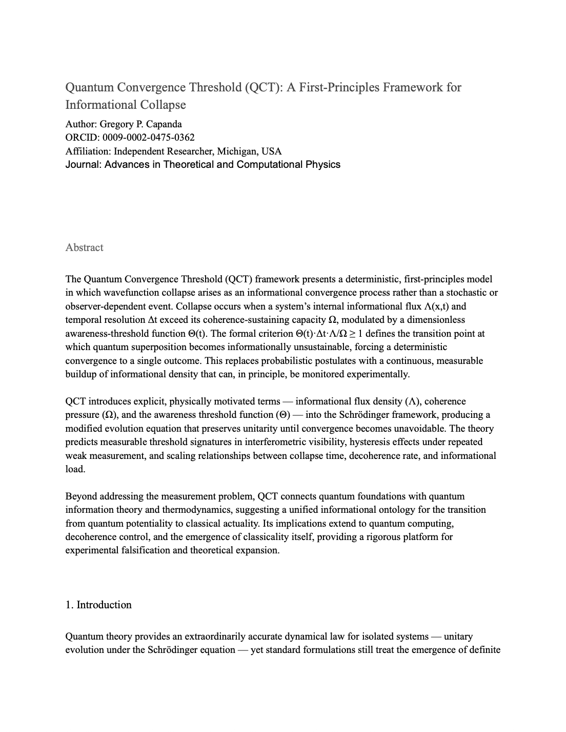 That drive culminated in his Quantum Convergence Threshold (QCT) — a first-principles